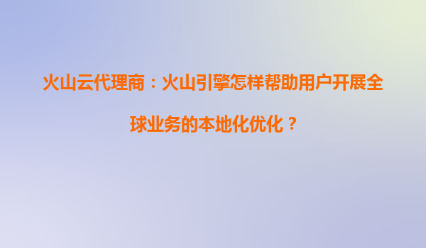 2025-03-29火山引擎与代理商如何助力企业全球化业务本地化优化? 一、全球化业务面临的本地化挑战 企业在拓展海外市场时,常面临语言适配、文化差异、合规风险、网络延迟、本地化运营五大核心痛点。传统解决方案...