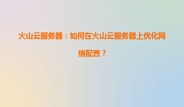 2025-03-29火山云服务器:如何在火山云服务器上优化网络配置? 一、引言:网络优化的重要性 在云计算时代,服务器的网络性能直接影响用户体验和业务连续性。对于企业而言,高延迟、带宽不足或网络波动可能导致服务中...