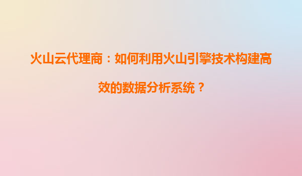 2025-03-28火山云代理商:如何利用火山引擎技术构建高效的数据分析系统? 一、火山引擎的技术优势解析 火山引擎作为字节跳动旗下的云服务平台,以海量数据处理和智能算法...