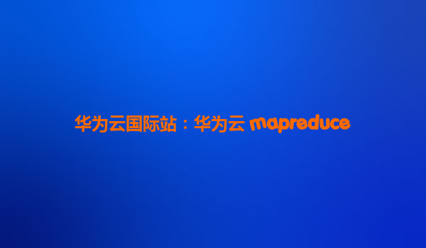 华为云国际站:华为云 Mapreduce 助力大数据处理