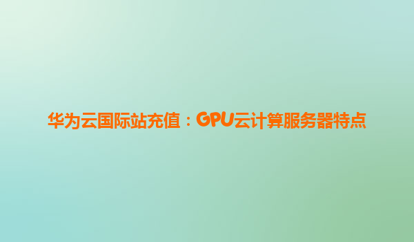 华为云国际站充值:GPU云计算服务器特点