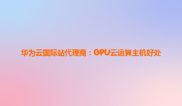 华为云国际站代理商:GPU云运算主机好处