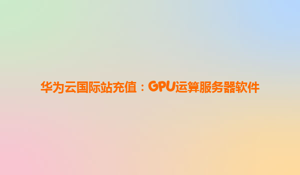 华为云国际站充值:GPU运算服务器软件优势