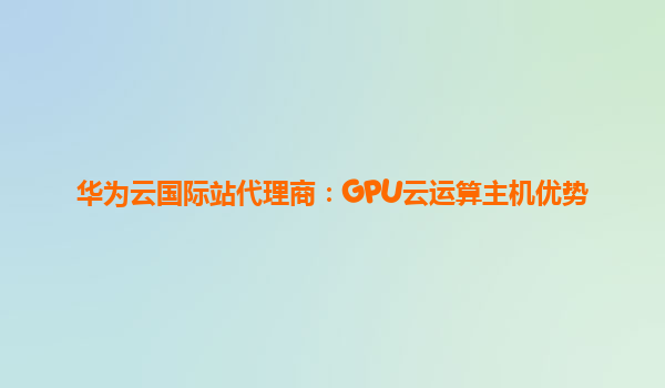 华为云国际站代理商:GPU云运算主机优势