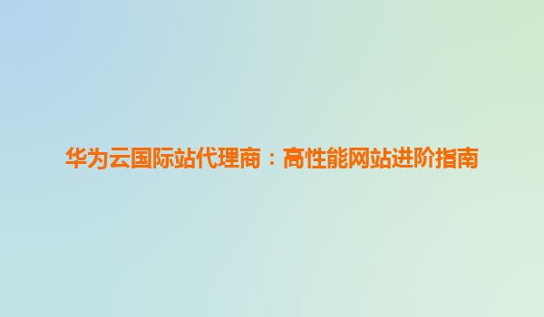 华为云国际站代理商:高性能网站进阶指南