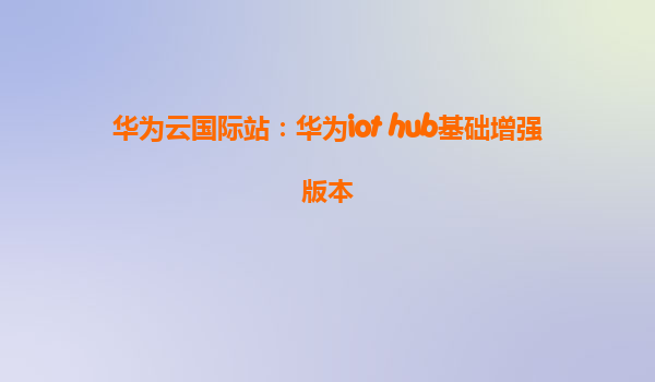 华为云国际站:华为IoT Hub基础增强版本