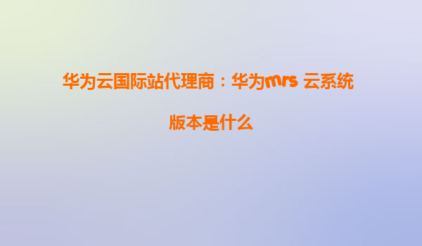 华为云国际站代理商:华为MRS云系统版本介绍
