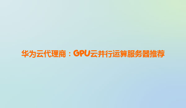 华为云代理商:GPU云并行运算服务器推荐