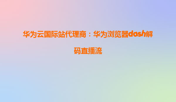 随着互联网技术的飞速发展,在线视频和直播流媒体逐渐成为现代社会娱乐和信息传播的重要方式。为了满足全球用户对于高清视频流的需求,华为云提供了强大的云计算服务,而华为浏览器和dash解码技术则为用户带来了更加流畅和高效的视频播放体验。本文将详细介绍华为云国际站代理商的角色,探讨华为浏览器如何配合dash解码技术优化直播流,并分析华为云的优势及其对直播流行业的影响。