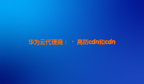 华为云代理商:高防cdn和CDN的优势与应用