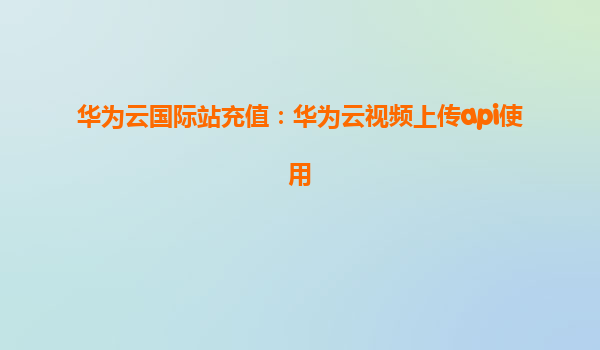 华为云国际站充值与视频上传API使用指南