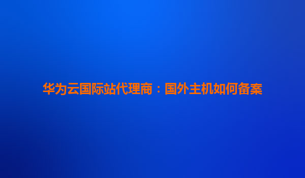 华为云国际站代理商:国外主机如何备案