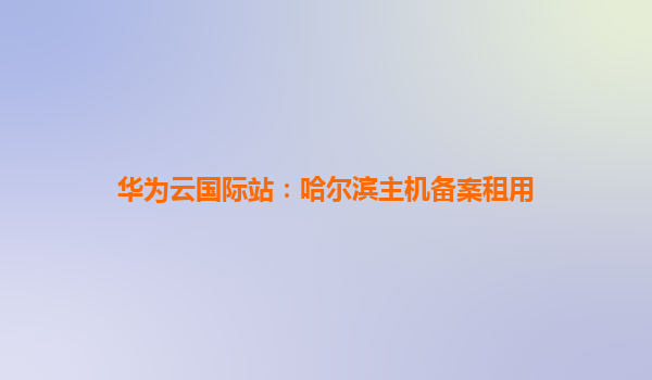 华为云国际站:哈尔滨主机备案租用全方位解析