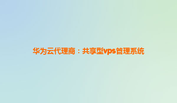 华为云代理商:共享型VPS管理系统的核心优势与价值