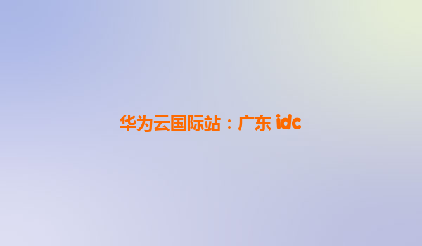 华为云国际站:广东IDC——赋能全球企业的数字化转型基石