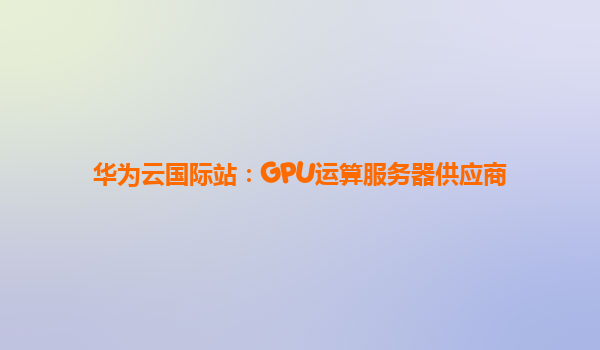 华为云国际站:全球领先的GPU运算服务器供应商