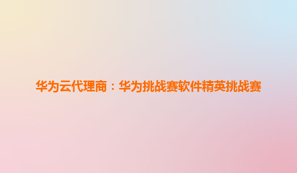 华为云代理商:华为挑战赛软件精英挑战赛的强力后盾