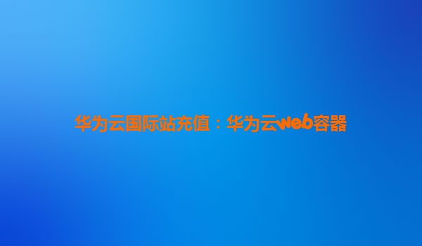 华为云国际站充值指南:华为云Web容器服务深度解析