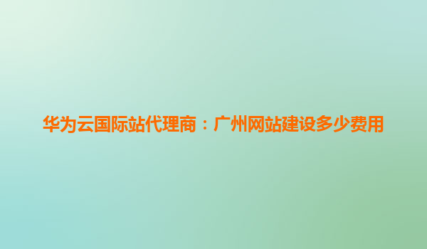 华为云国际站代理商:广州网站建设费用详解及华为云优势解析