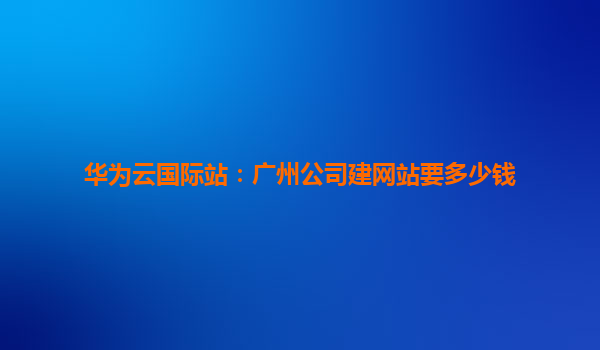 华为云国际站:广州公司建网站要多少钱?全面解析成本与优势
