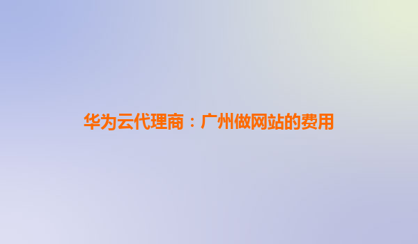 华为云代理商:广州做网站的费用解析与优势