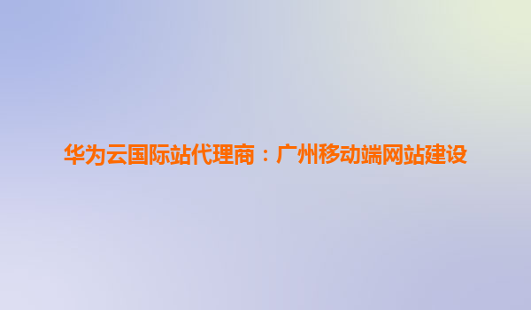 华为云国际站代理商:广州移动端网站建设解决方案