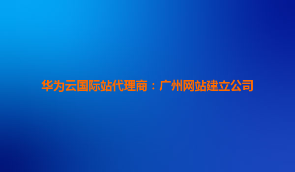 华为云国际站代理商:广州网站建立公司的首选合作伙伴