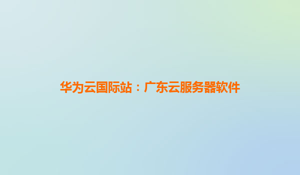 华为云国际站:广东云服务器软件的优势解析