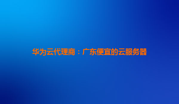 华为云代理商:广东地区高性价比云服务器选购指南