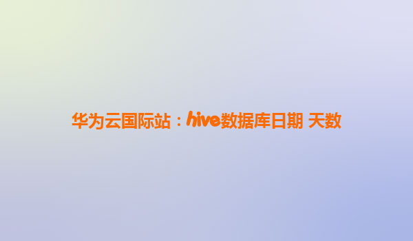 华为云国际站:Hive数据库日期与天数处理实战指南