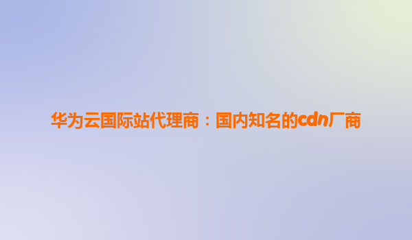 华为云国际站代理商:国内知名cdn厂商的强强联合