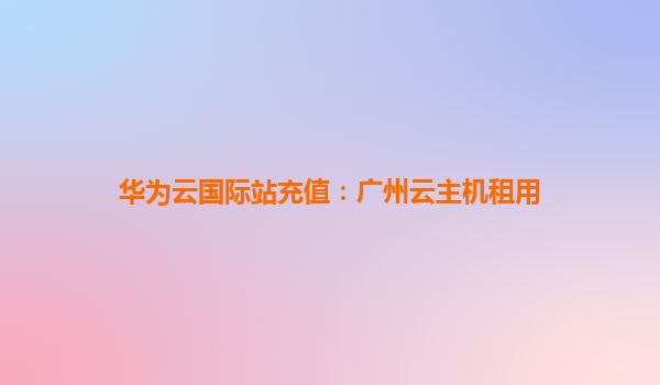 华为云国际站充值:广州云主机租用全面解析