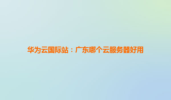 华为云国际站:广东哪个云服务器好用?全面解析华为云优势