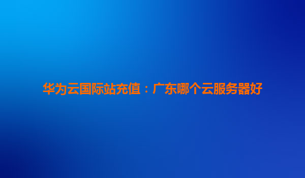 华为云国际站充值:广东哪个云服务器好?全面解析华为云优势