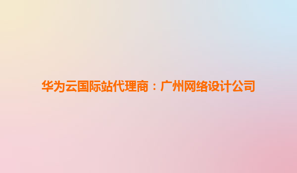 华为云国际站代理商:广州网络设计公司的合作优势与解决方案