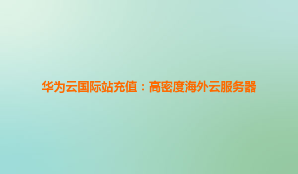华为云国际站充值:高密度海外云服务器赋能全球企业数字化转型