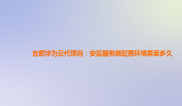 合肥华为云代理商:安装服务器配置环境需要多久