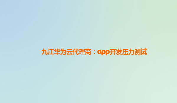 九江华为云代理商:app开发压力测试