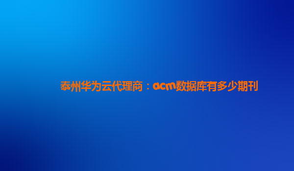 泰州华为云代理商:ACM数据库期刊数量调研报告