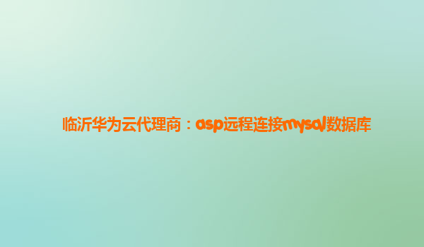 临沂华为云代理商:ASP远程连接MySQL数据库