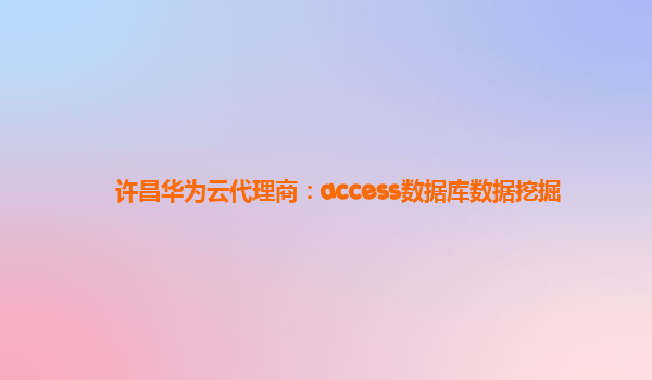 在利用许昌华为云代理商进行Access数据库数据挖掘时,可以按照以下流程进行: