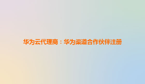 成为华为云代理商:华为渠道合作伙伴注册指南