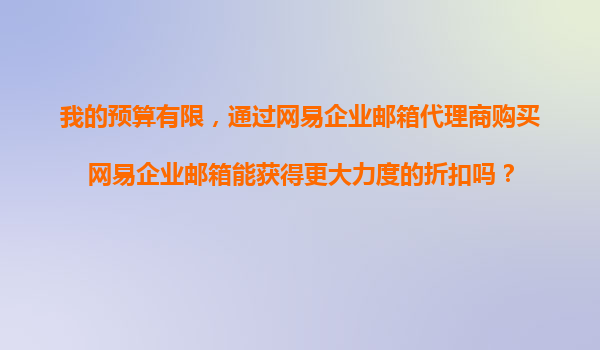 2025-11-14预算有限?通过网易企业邮箱代理商购买能获得更大力度的折扣吗? 一、预算有限,如何选择网易企业邮箱? 对于预算有限的企业而言,选择一款性价比高的企业邮箱至关重要。网易企业邮箱作为国内...