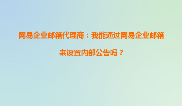 2025-09-22网易企业邮箱代理商:我能通过网易企业邮箱来设置内部公告吗? 随着企业数字化转型的加速,高效便捷的内部沟通工具成为企业管理的重要需求。作为国内领先的企业邮箱服务商,网易企业邮箱凭借其强大的功能和稳定的...