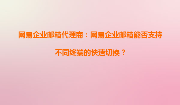 2025-09-21网易企业邮箱代理商:网易企业邮箱能否支持不同终端的快速切换? 在当今快节奏的职场环境中,企业邮箱作为日常办公的核心工具,其跨终端协同能力和响应速度直接影响团队效率。作为国内领先的企业邮箱服务商...