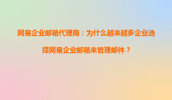 网易企业邮箱代理商:为什么越来越多企业选择网易企业邮箱来管理邮件? 一、网易企业邮箱的市场背景与需求增长 随着数字化转型的加速,电子邮件作为企业内外沟通的核心工具,其安全性和稳定性愈发受...