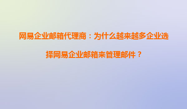 网易企业邮箱代理商:为什么越来越多企业选择网易企业邮箱来管理邮件? 一、网易企业邮箱的市场背景与需求增长 随着数字化转型的加速,电子邮件作为企业内外沟通的核心工具,其安全性和稳定性愈发受...