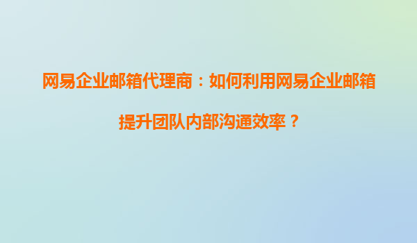 2025-09-18网易企业邮箱代理商:如何利用网易企业邮箱提升团队内部沟通效率? 在当今快速发展的商业环境中,高效的内部沟通是企业成功的关键因素之一。作为国内领先的企业邮箱服务提供商,网易企业邮箱凭借其强大的...