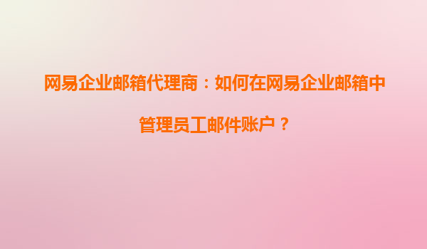 2025-09-17网易企业邮箱代理商指南:高效管理员工邮件账户 一、网易企业邮箱的核心优势 作为国内领先的企业级邮箱服务商,网易企业邮箱凭借稳定的系统架构、强大的安全防护和人性化管理功能,成为超过80万家企业...