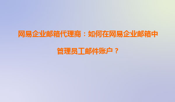网易企业邮箱代理商指南:高效管理员工邮件账户 一、网易企业邮箱的核心优势 作为国内领先的企业级邮箱服务商,网易企业邮箱凭借稳定的系统架构、强大的安全防护和人性化管理功能,成为超过80万家企业...